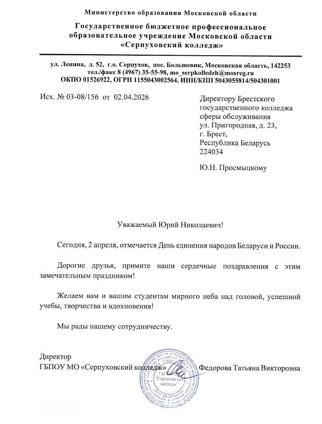 «Серпуховский колледж». Мероприятие прошло в рамках международного сотрудничества